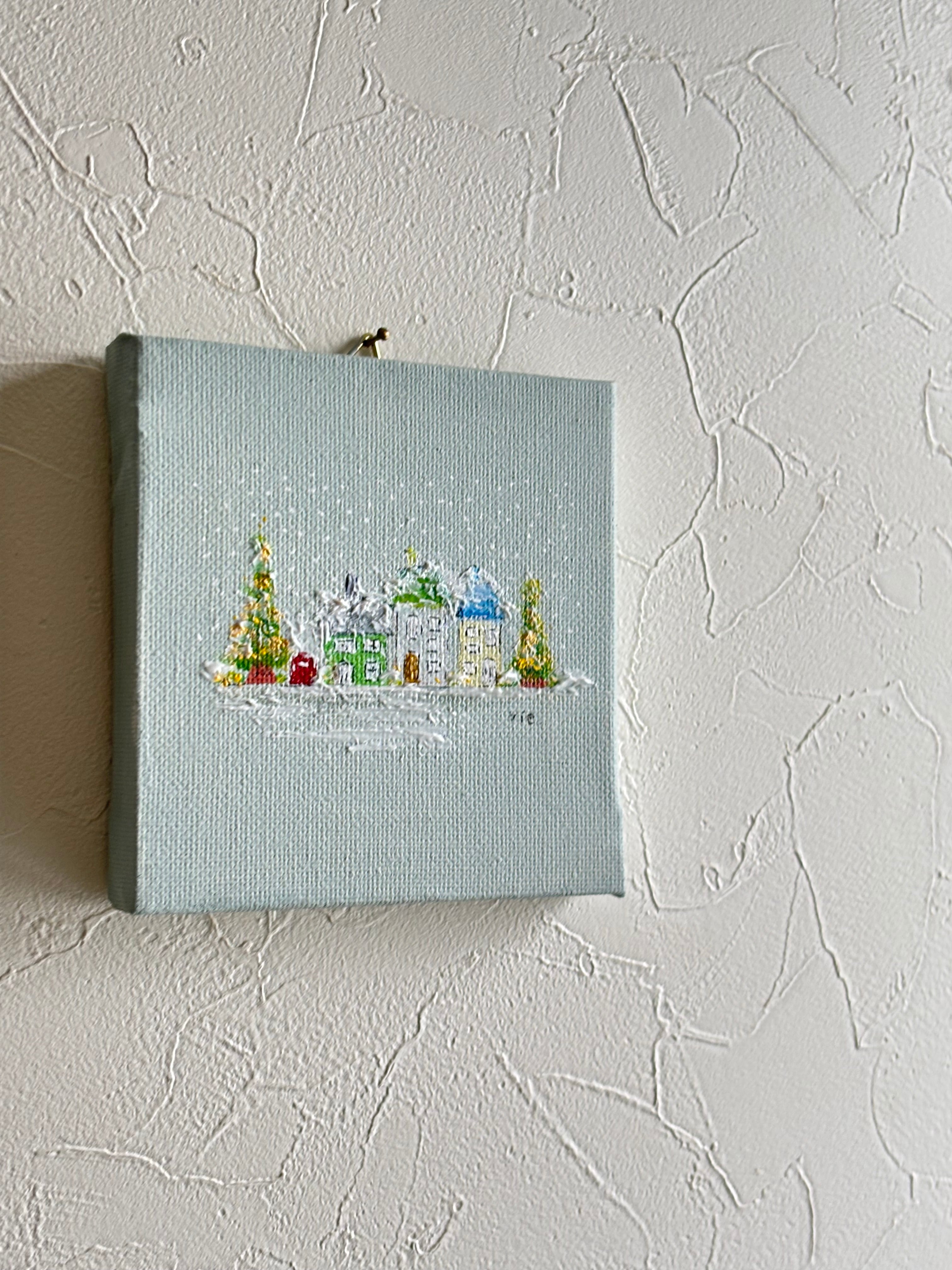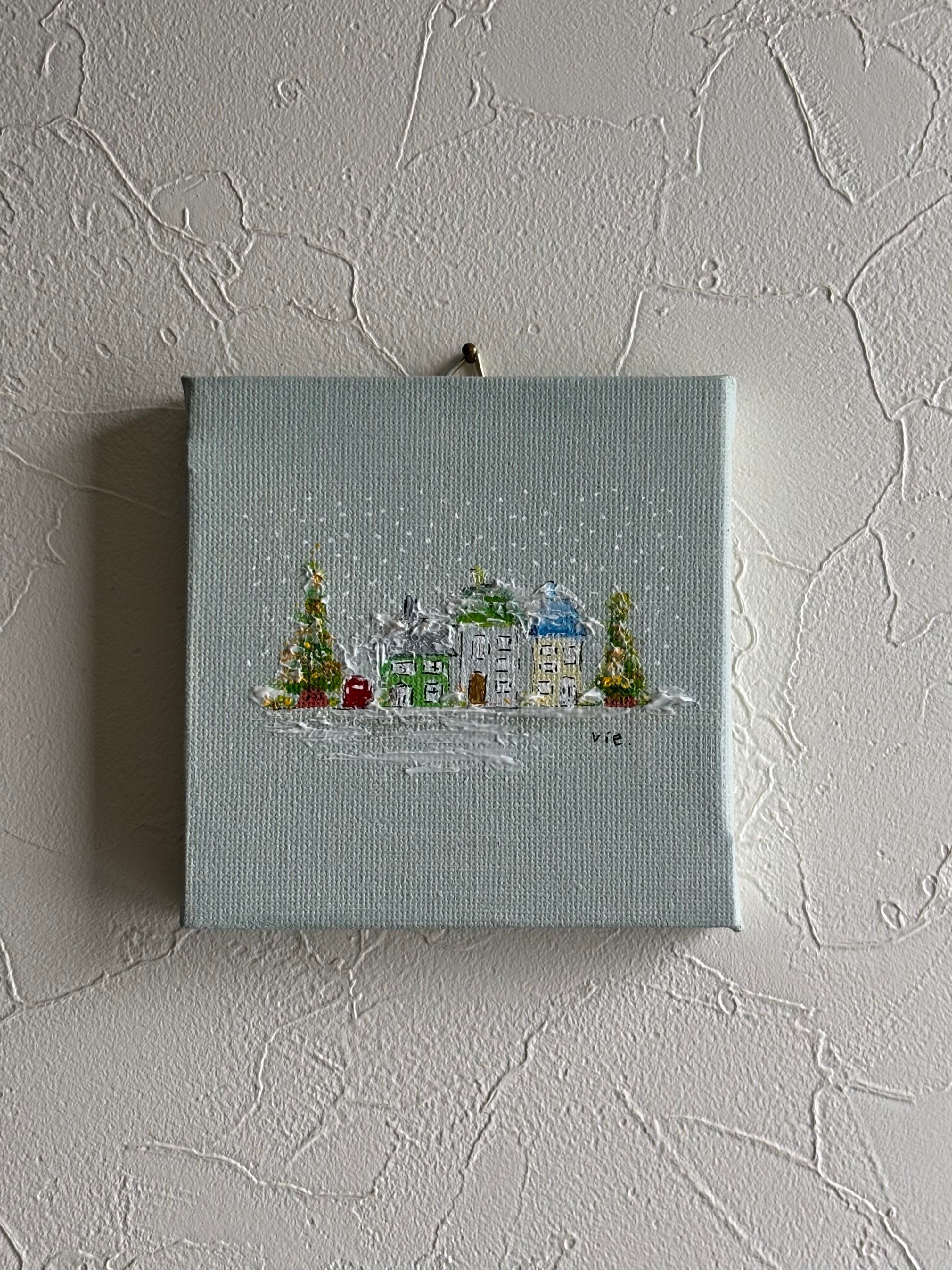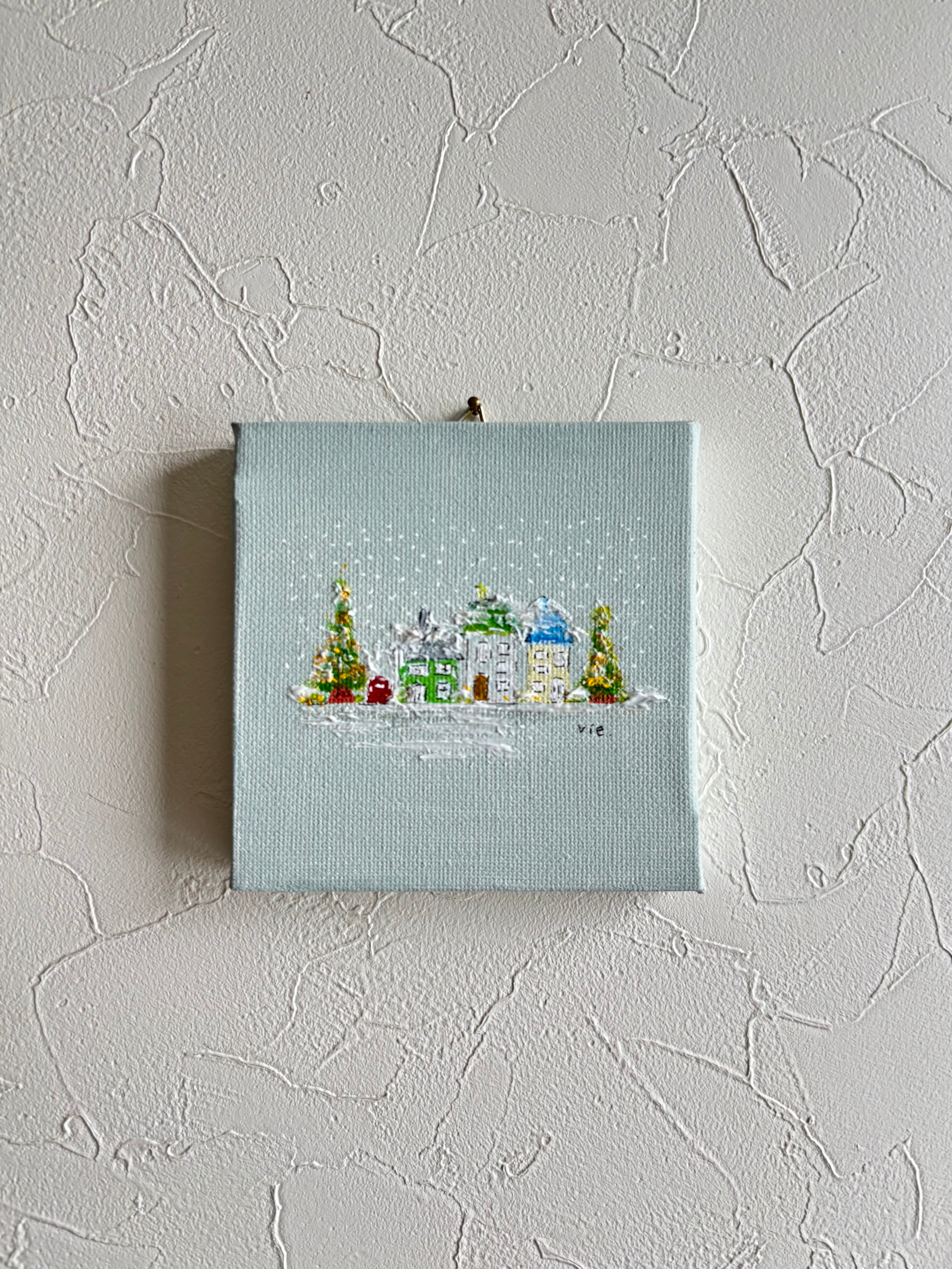 原画 小さなパネルアート⭐︎小さい街のクリスマス<ソリッドグリーン>