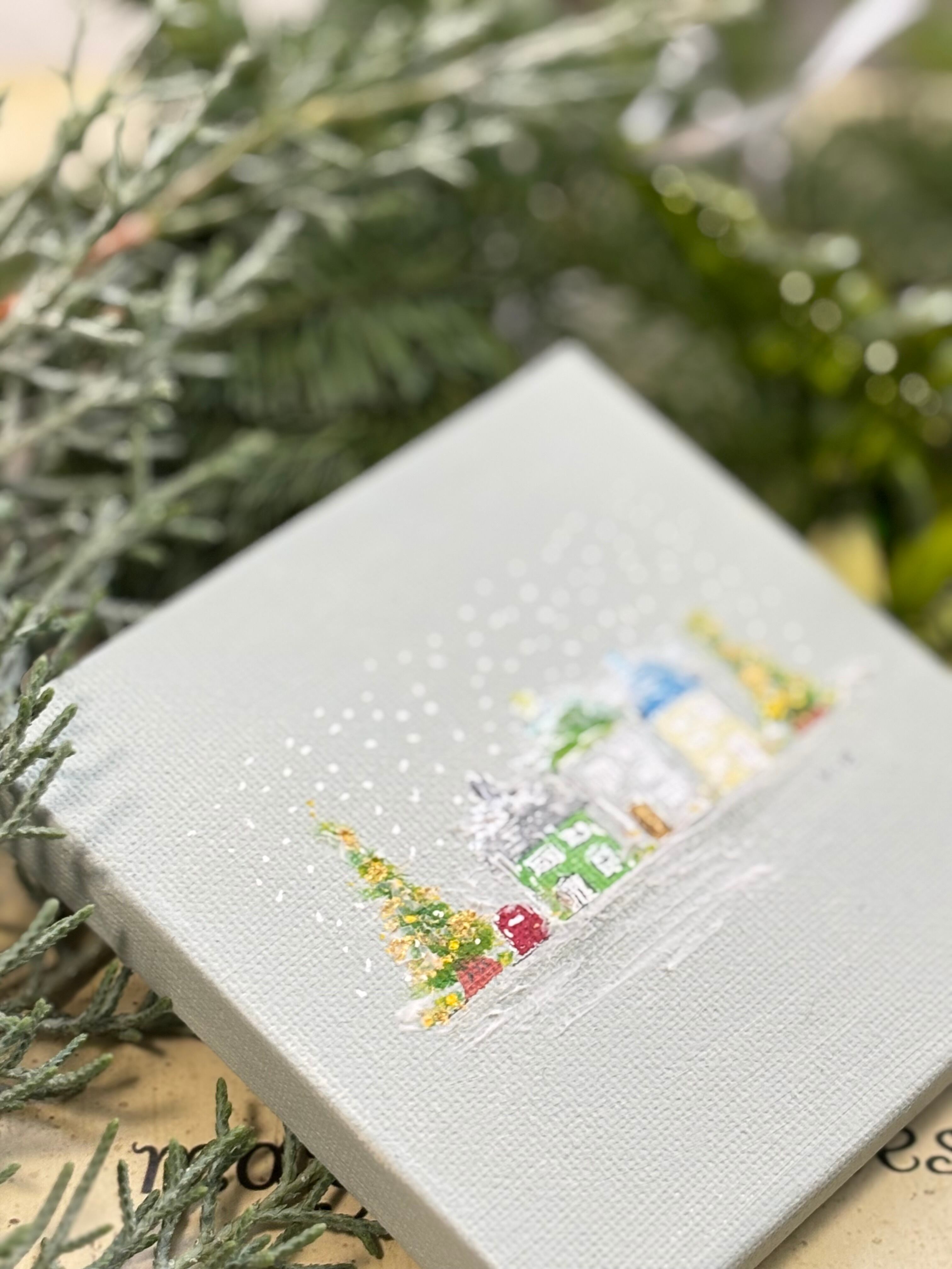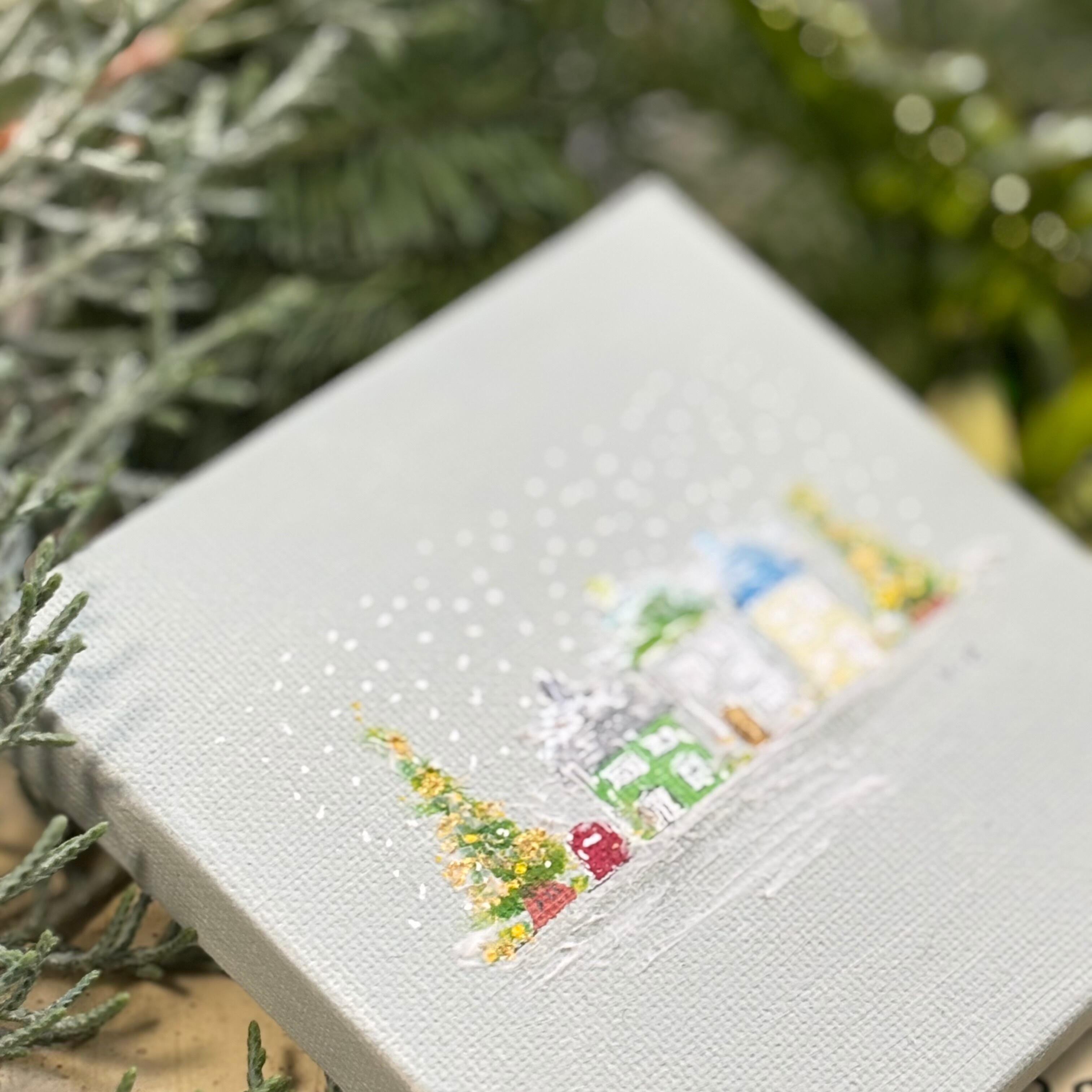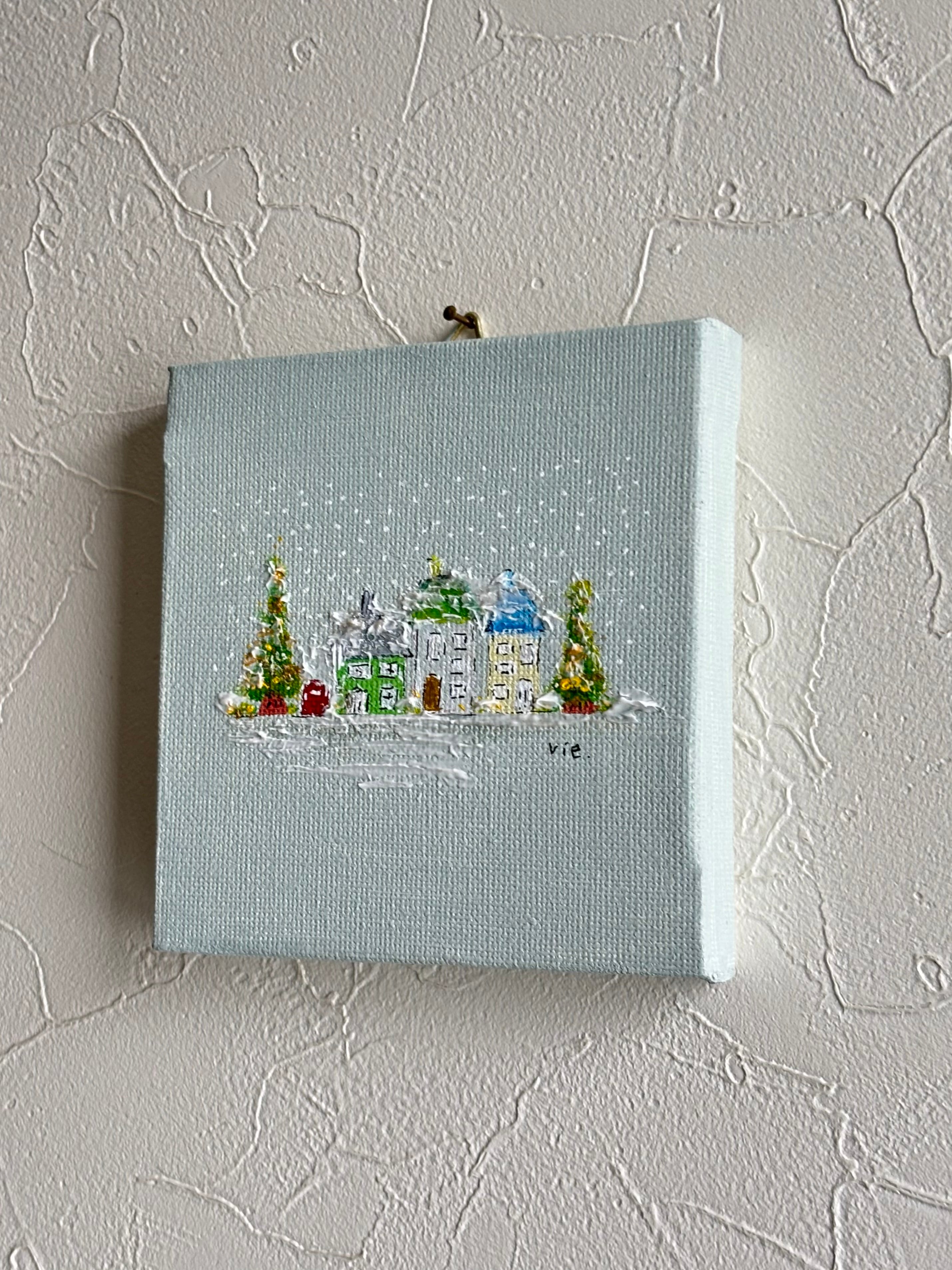 原画 小さなパネルアート⭐︎小さい街のクリスマス<ソリッドグリーン>