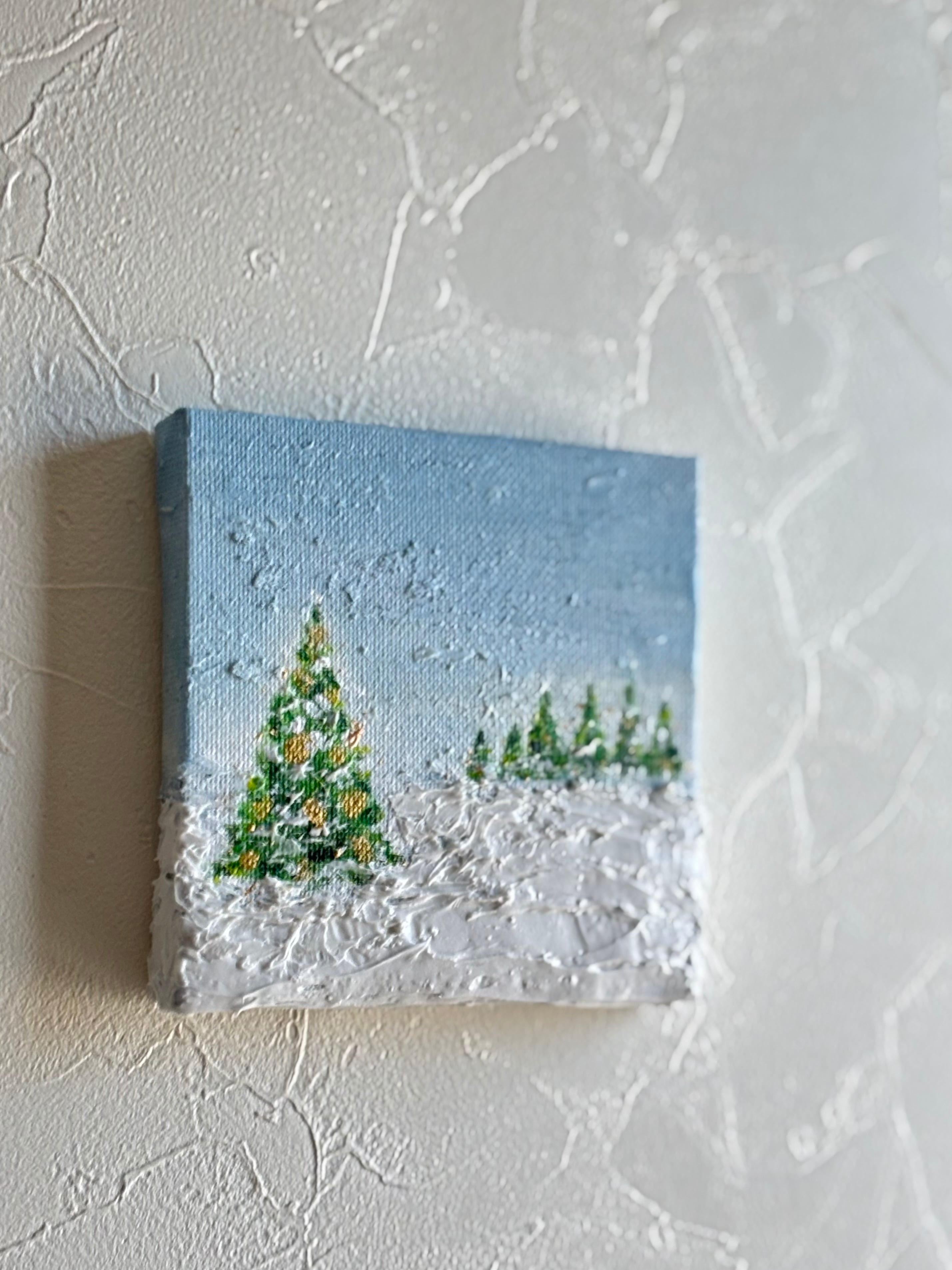 原画 小さなパネルアート⭐︎森のクリスマス<ゴールド>