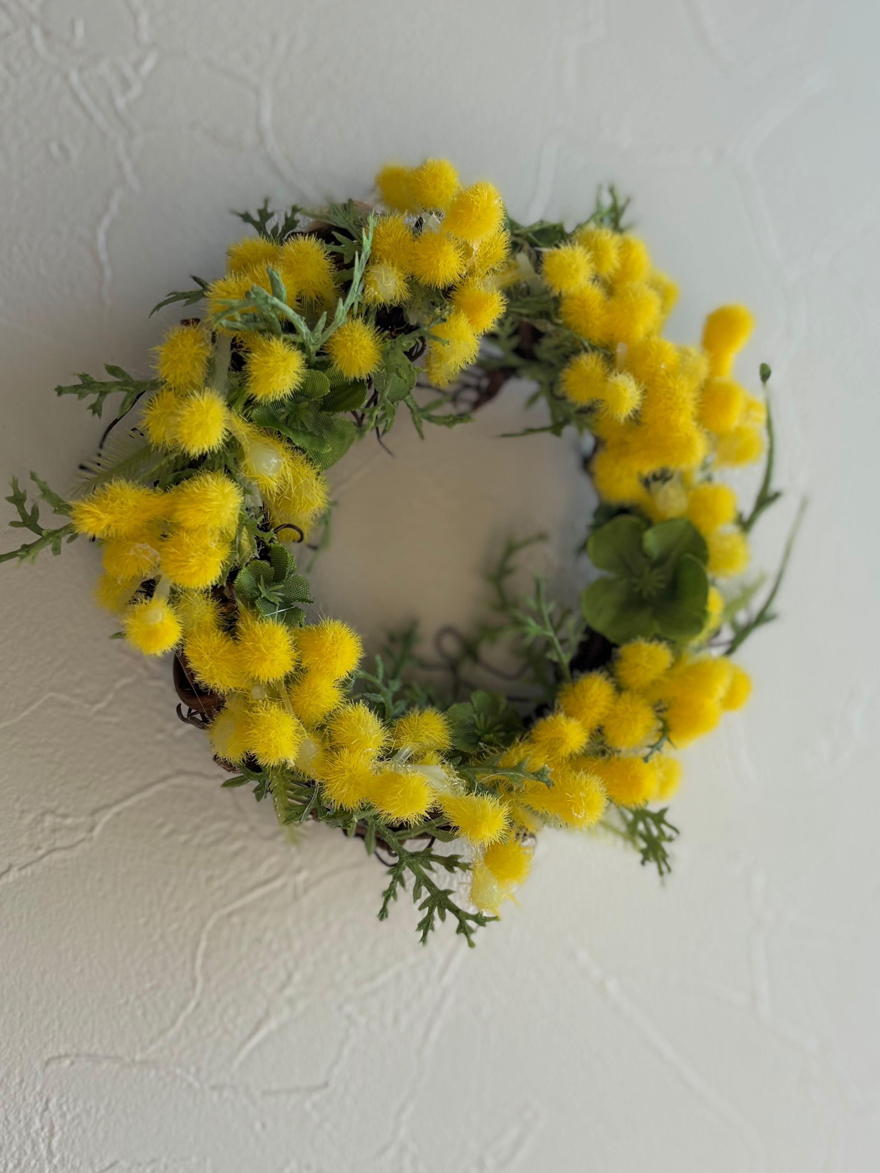 アートフラワー☆ミモザの小さなリース(Mサイズ)