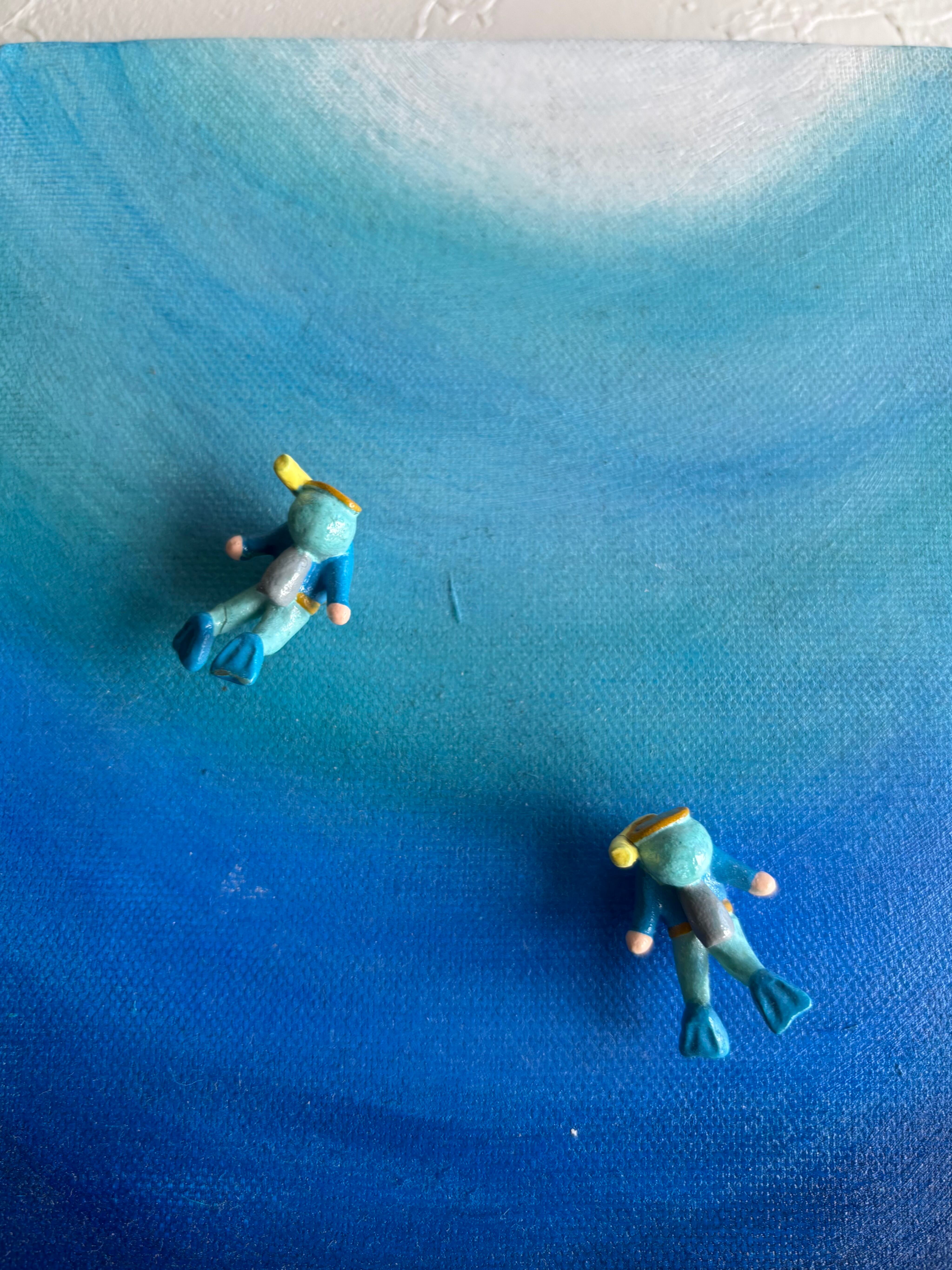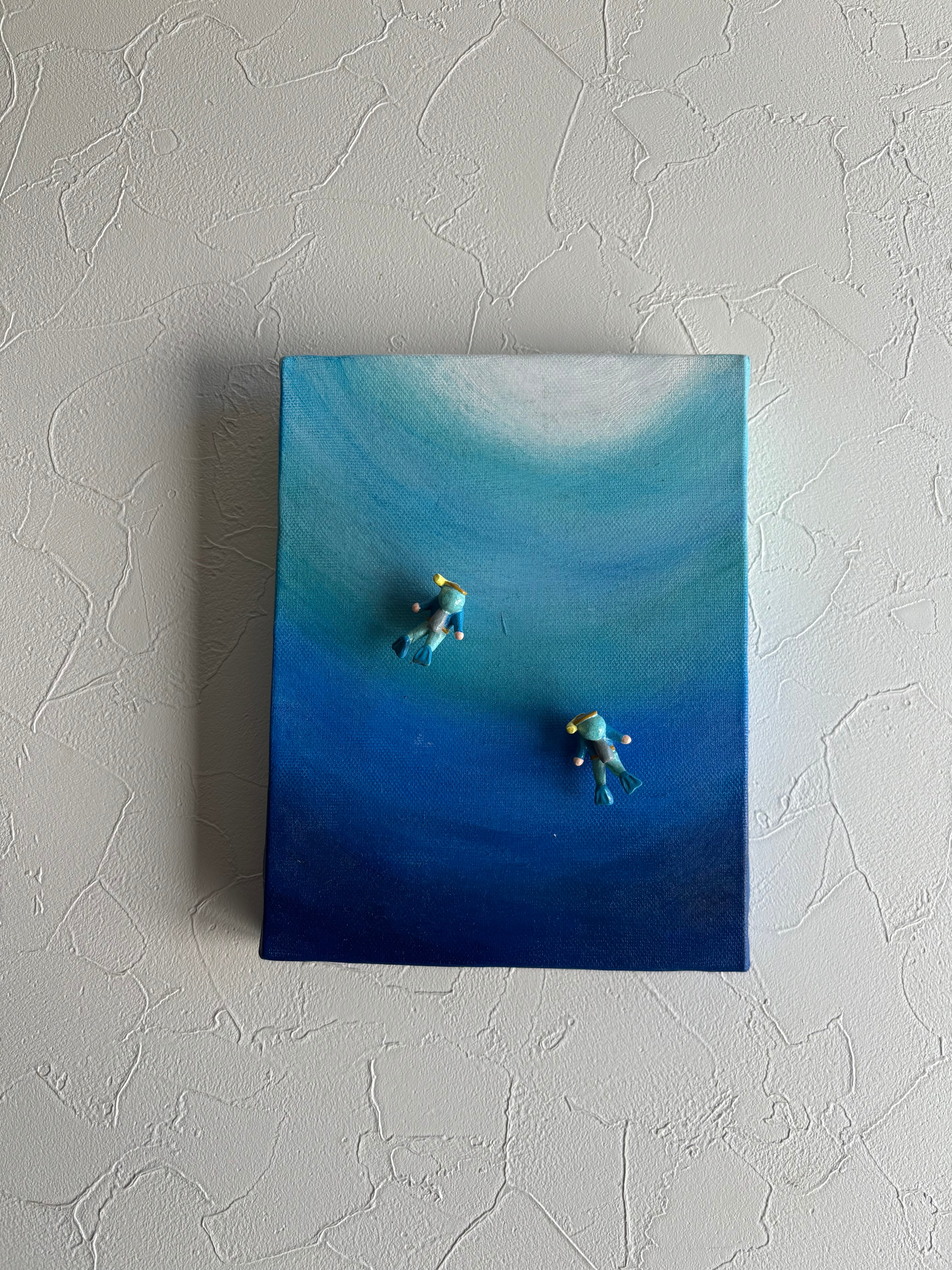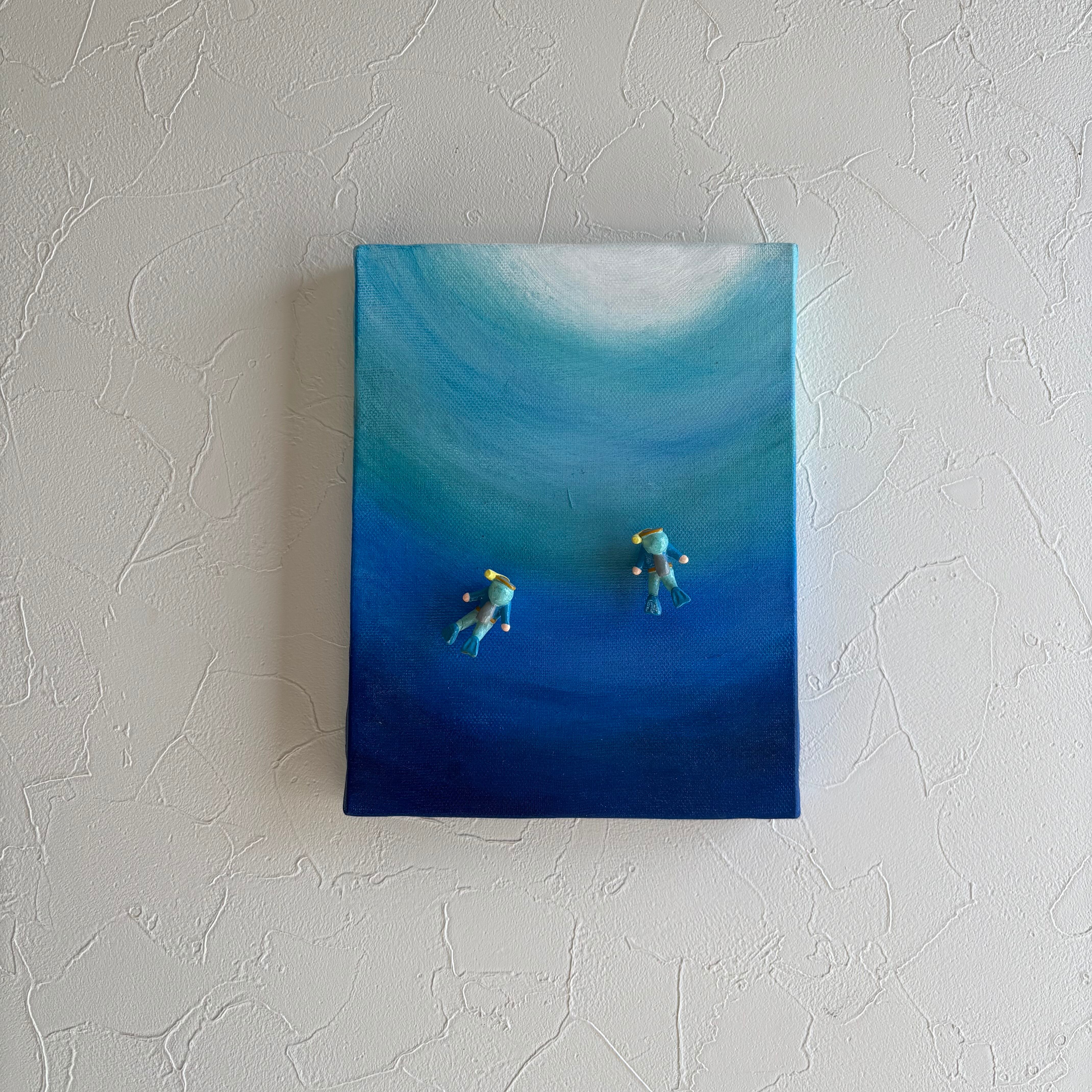 原画アクリル画☆青い世界(マグネットフィギア2コ付き)