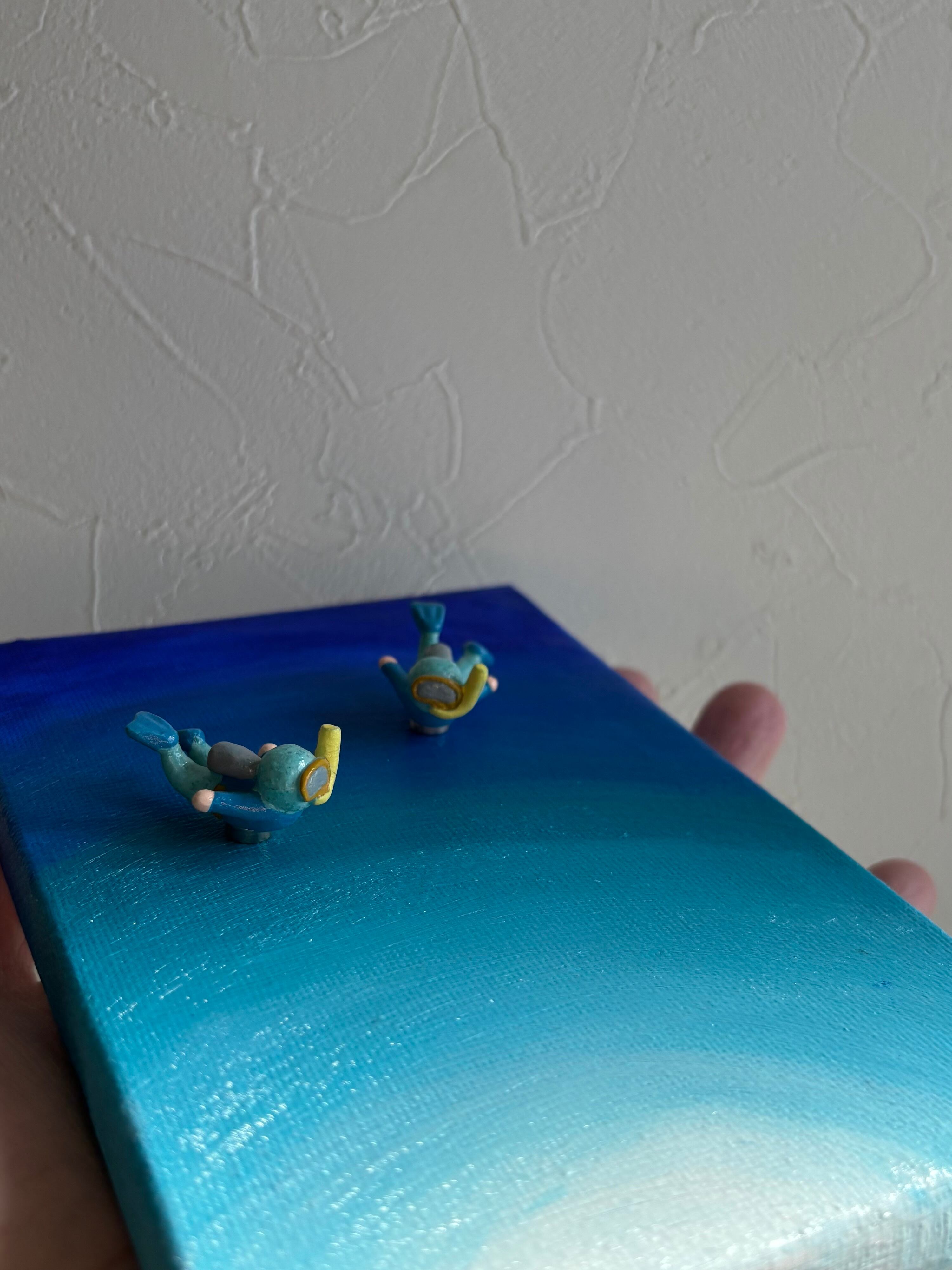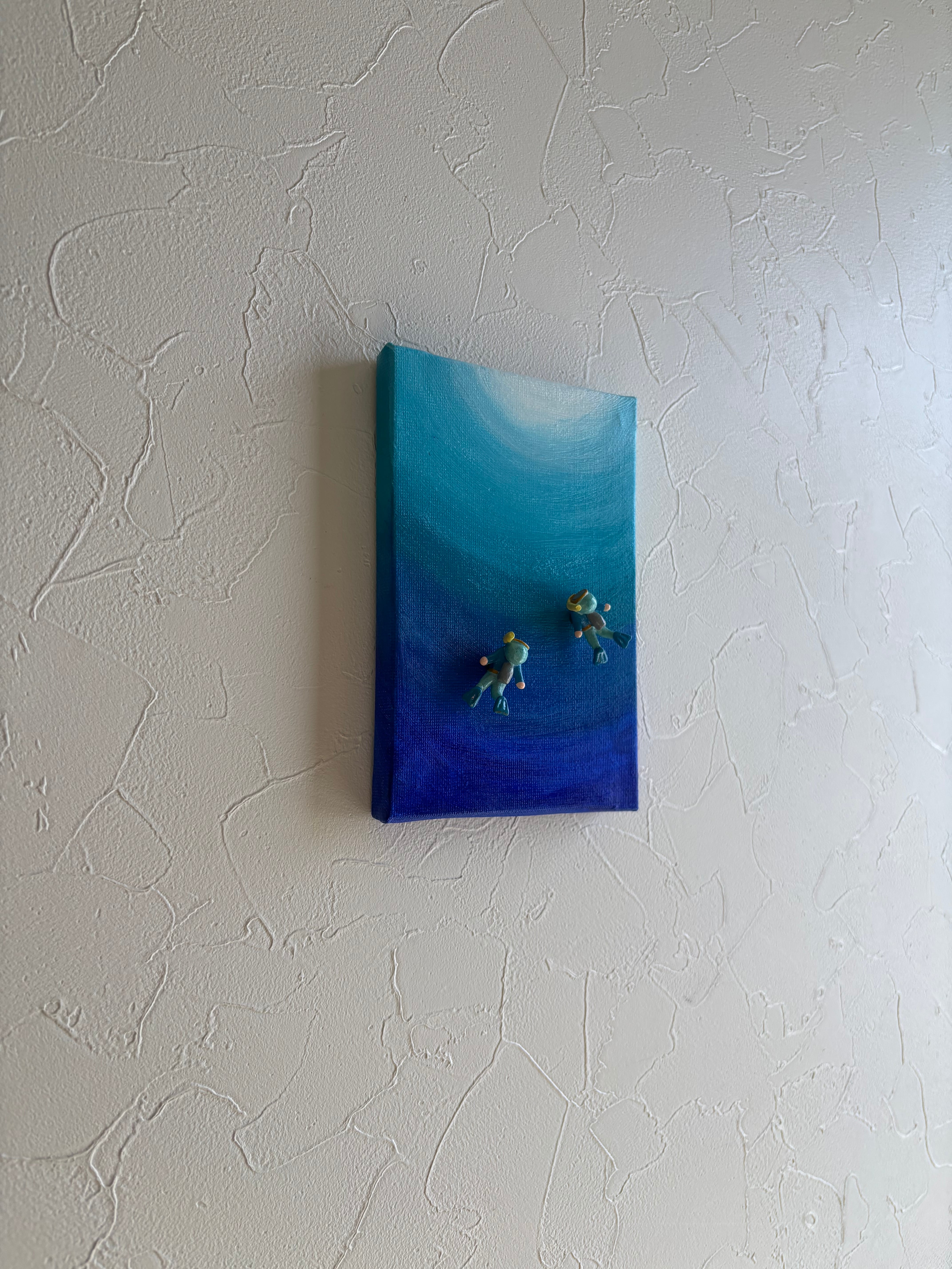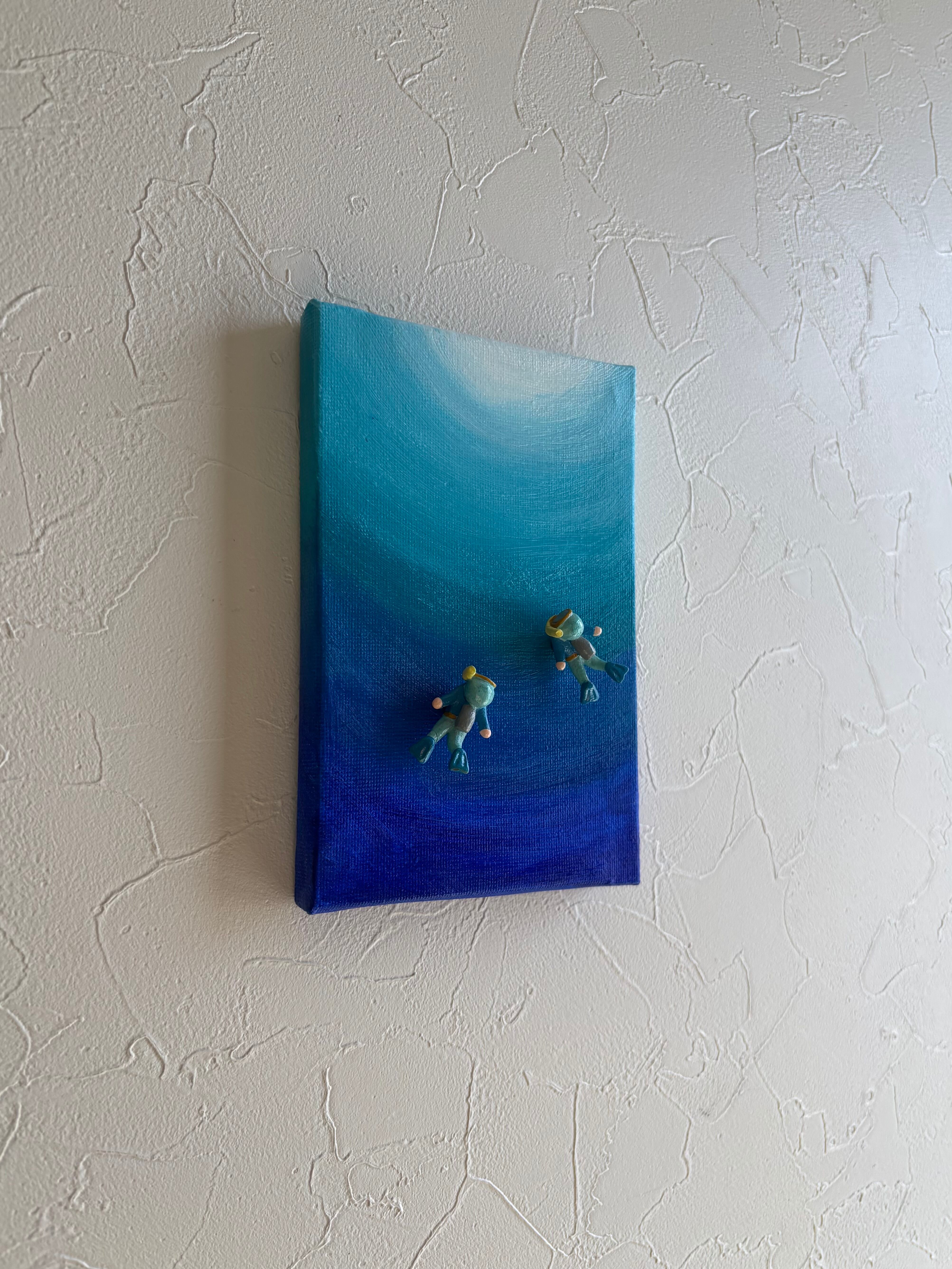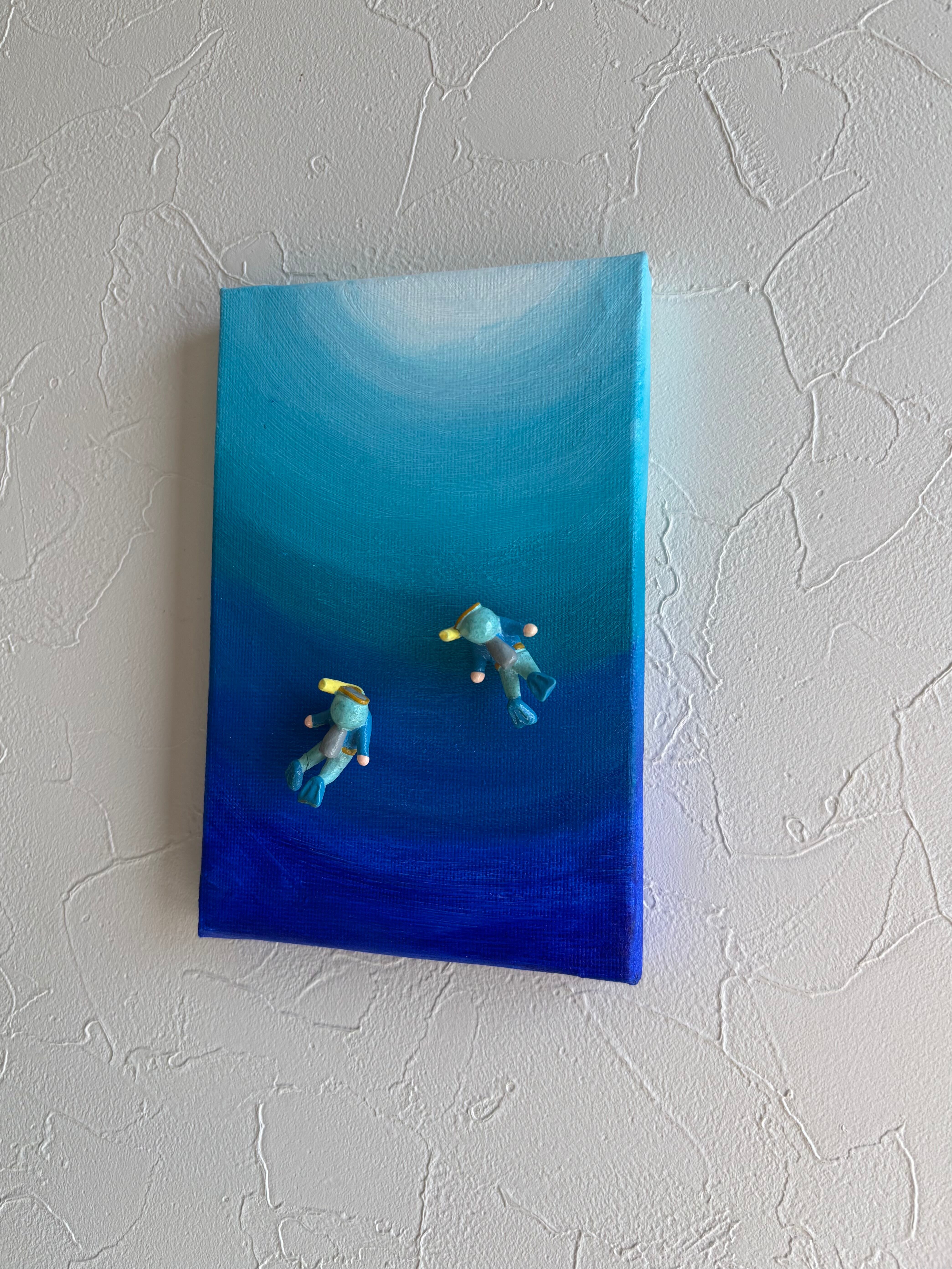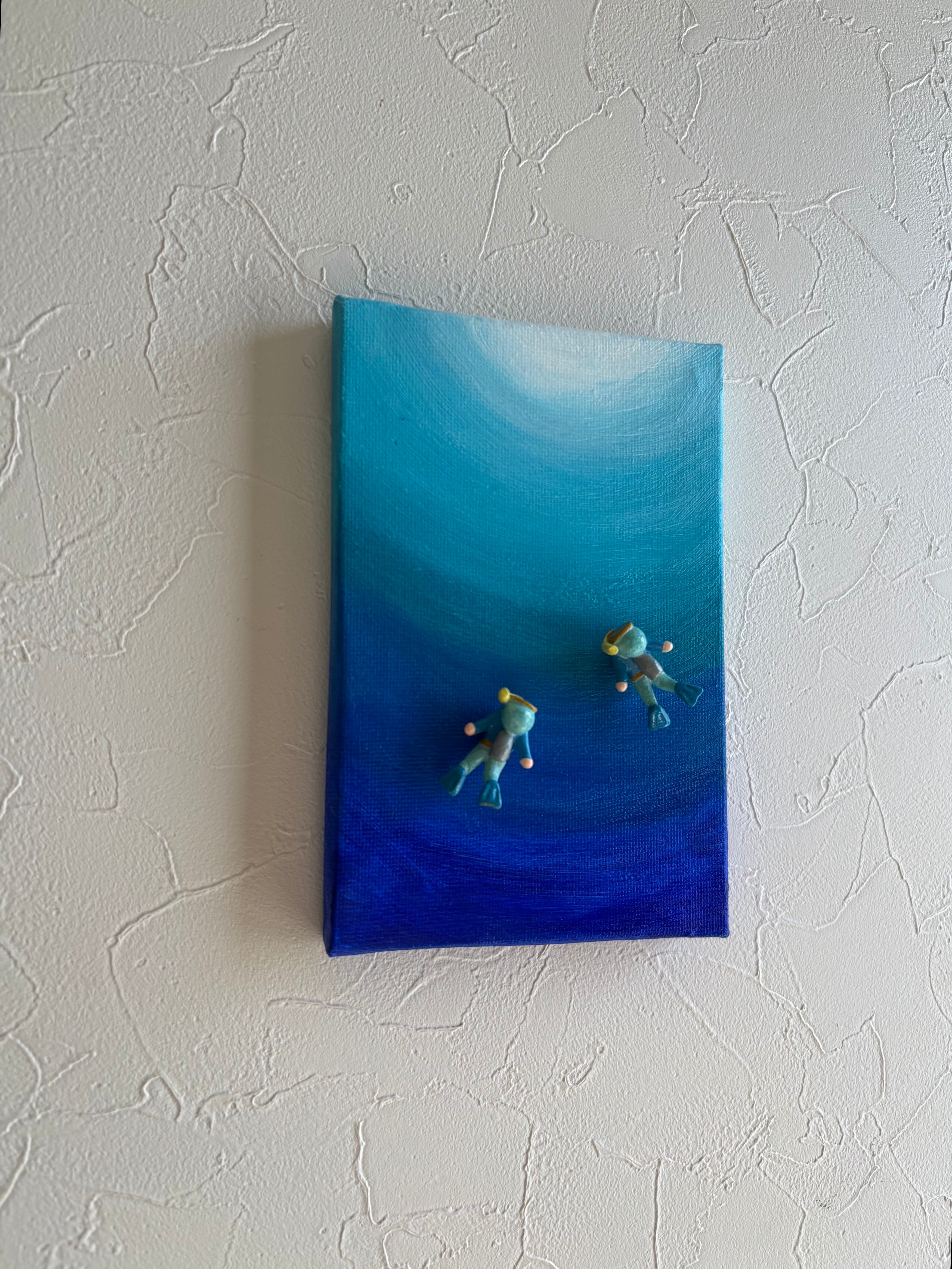 ハガキサイズのアクリル原画⭐︎海の中・・・青い世界(マグネットフィギア2コ付き)