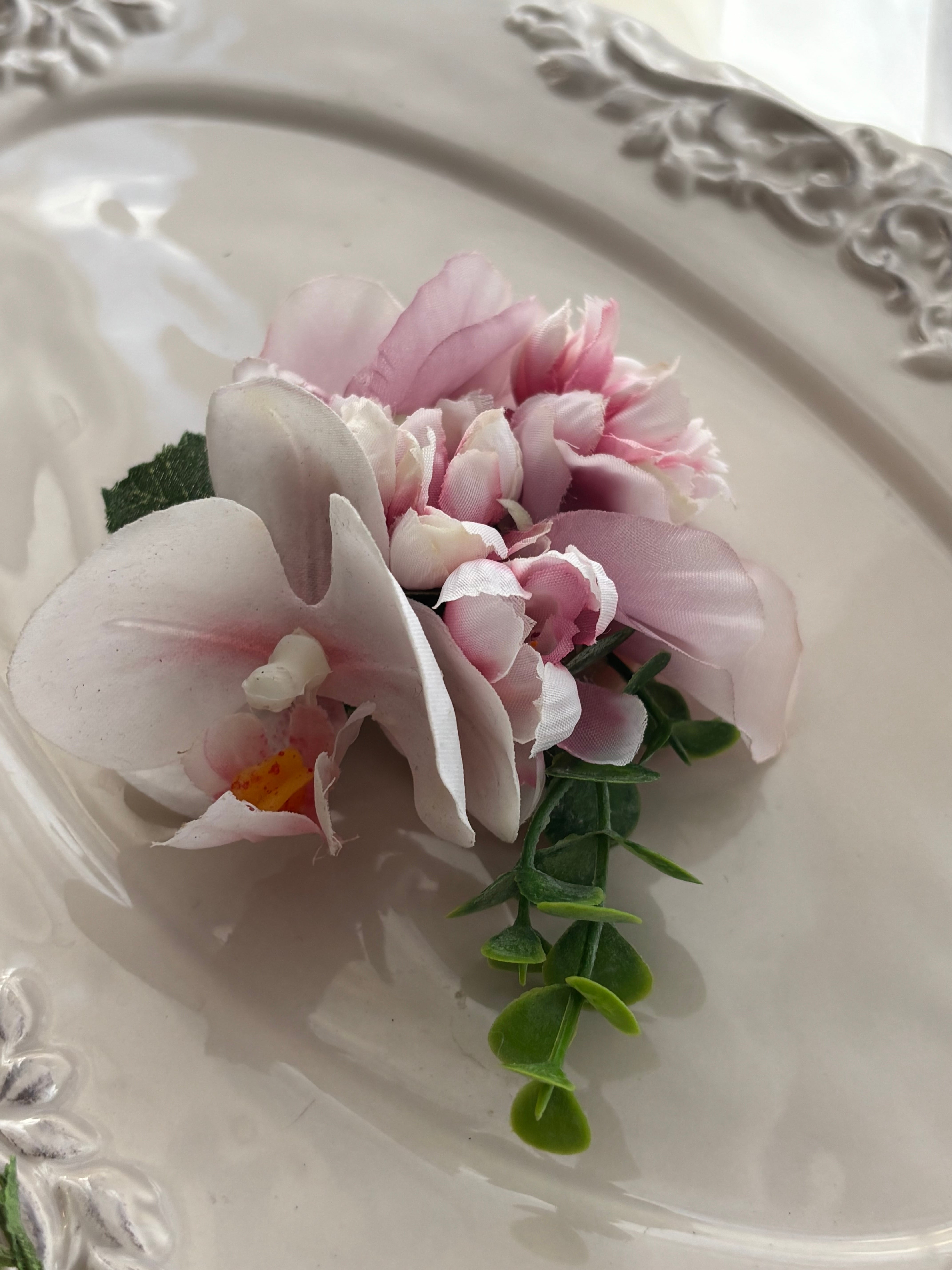 胡蝶蘭と八重桜の春色コサージュ(Wピン)