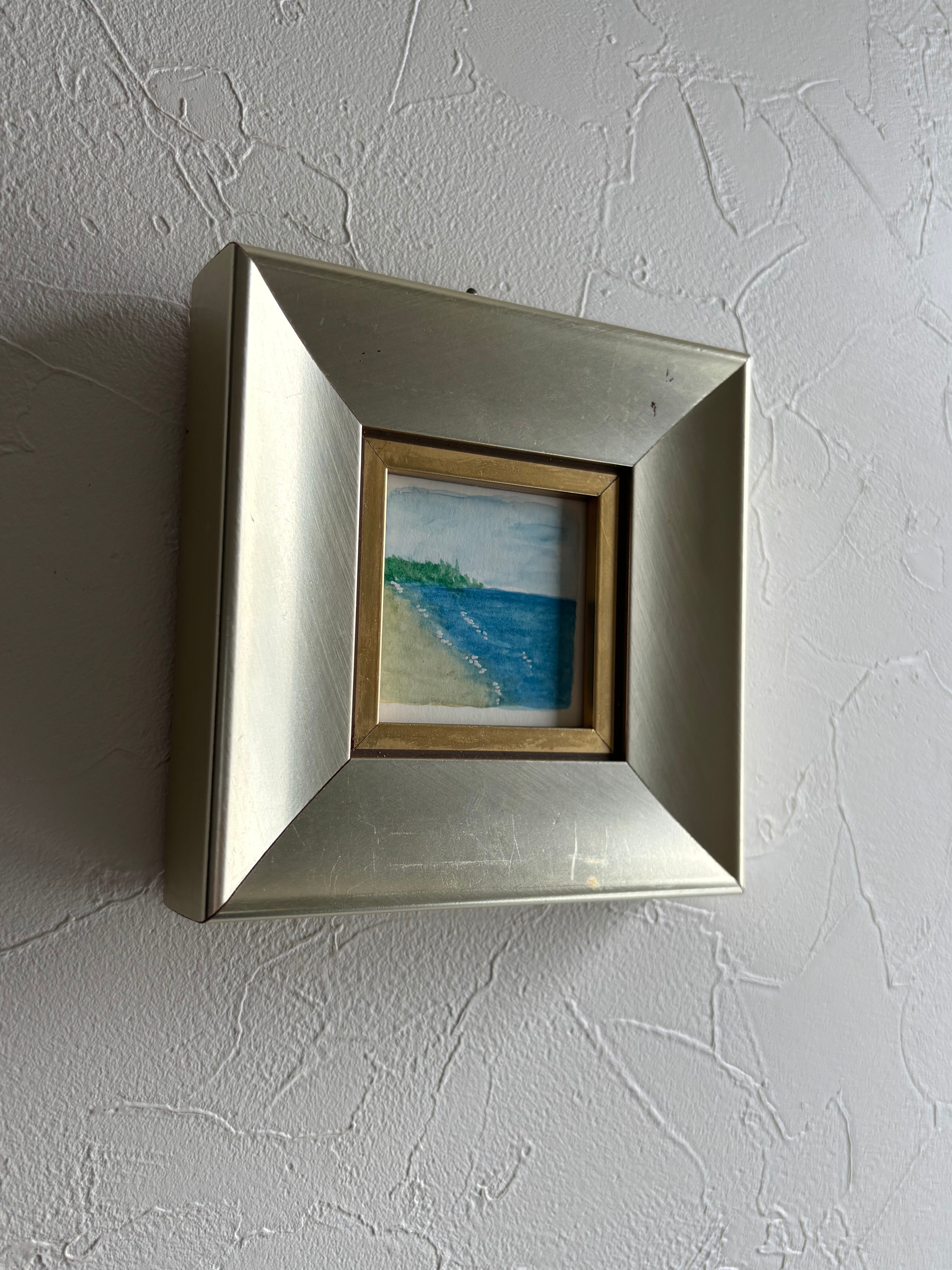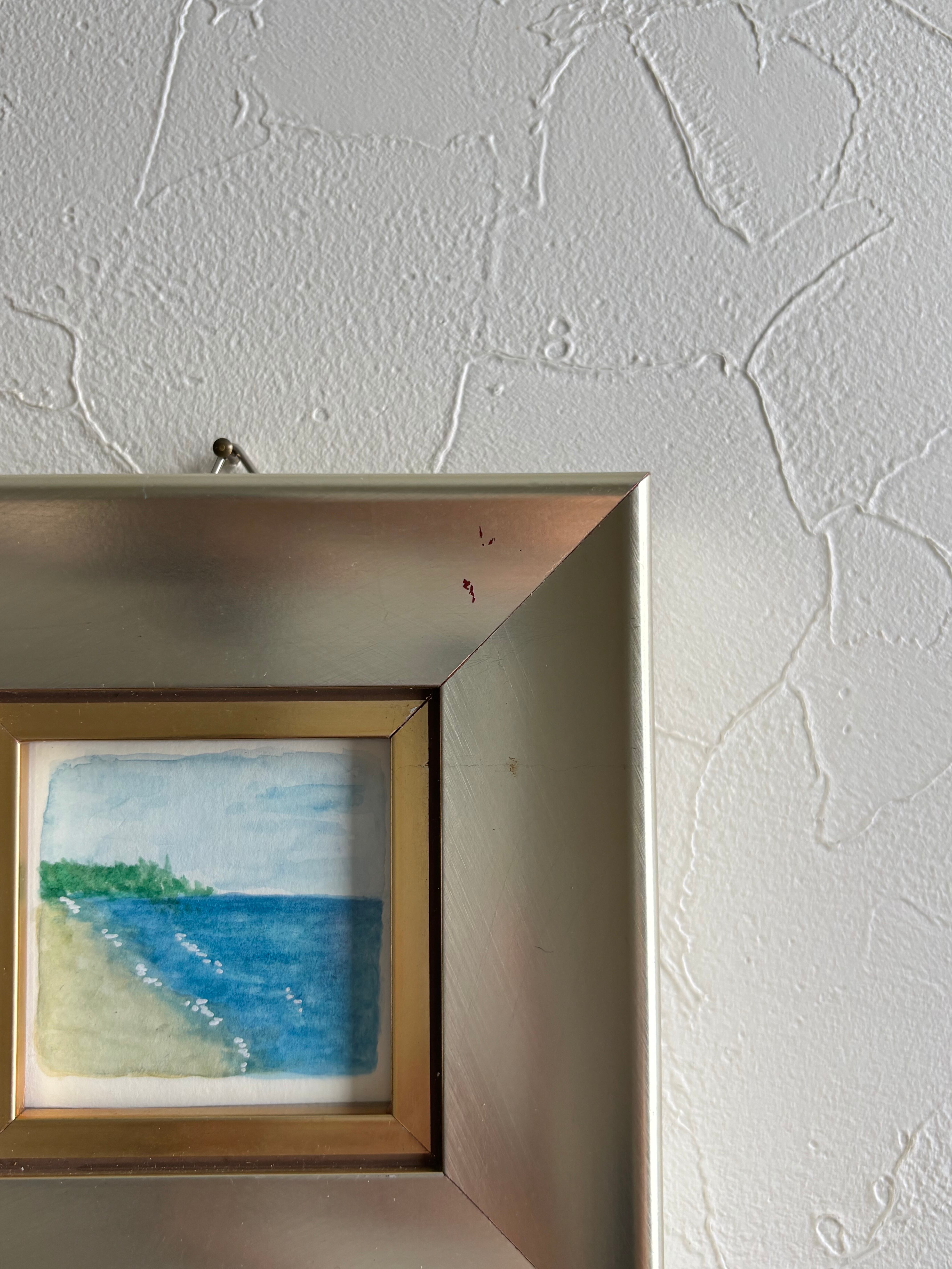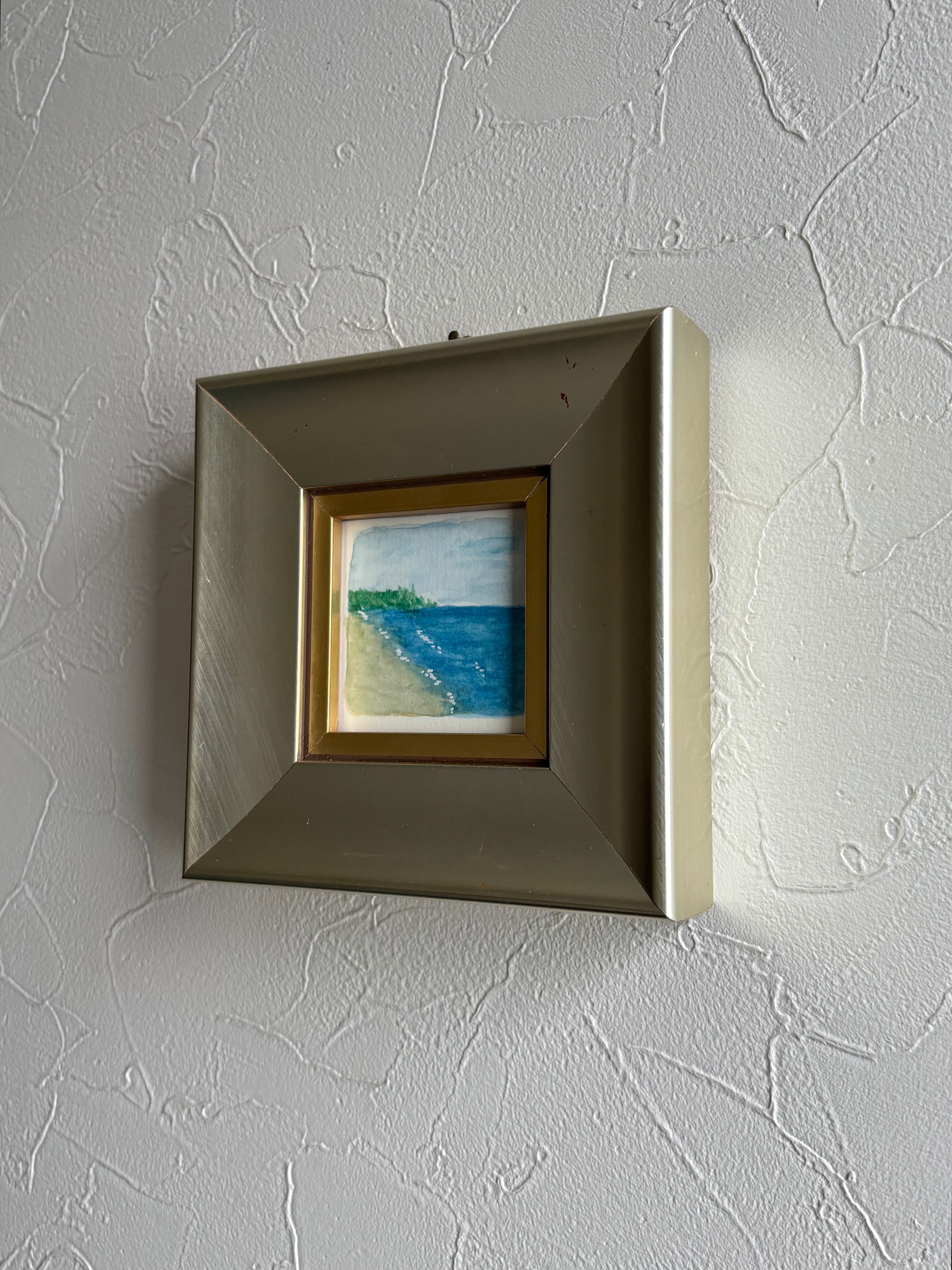 透明水彩原画~静かな朝の海~☆シャンパンゴールドカラーの木製立体フレーム