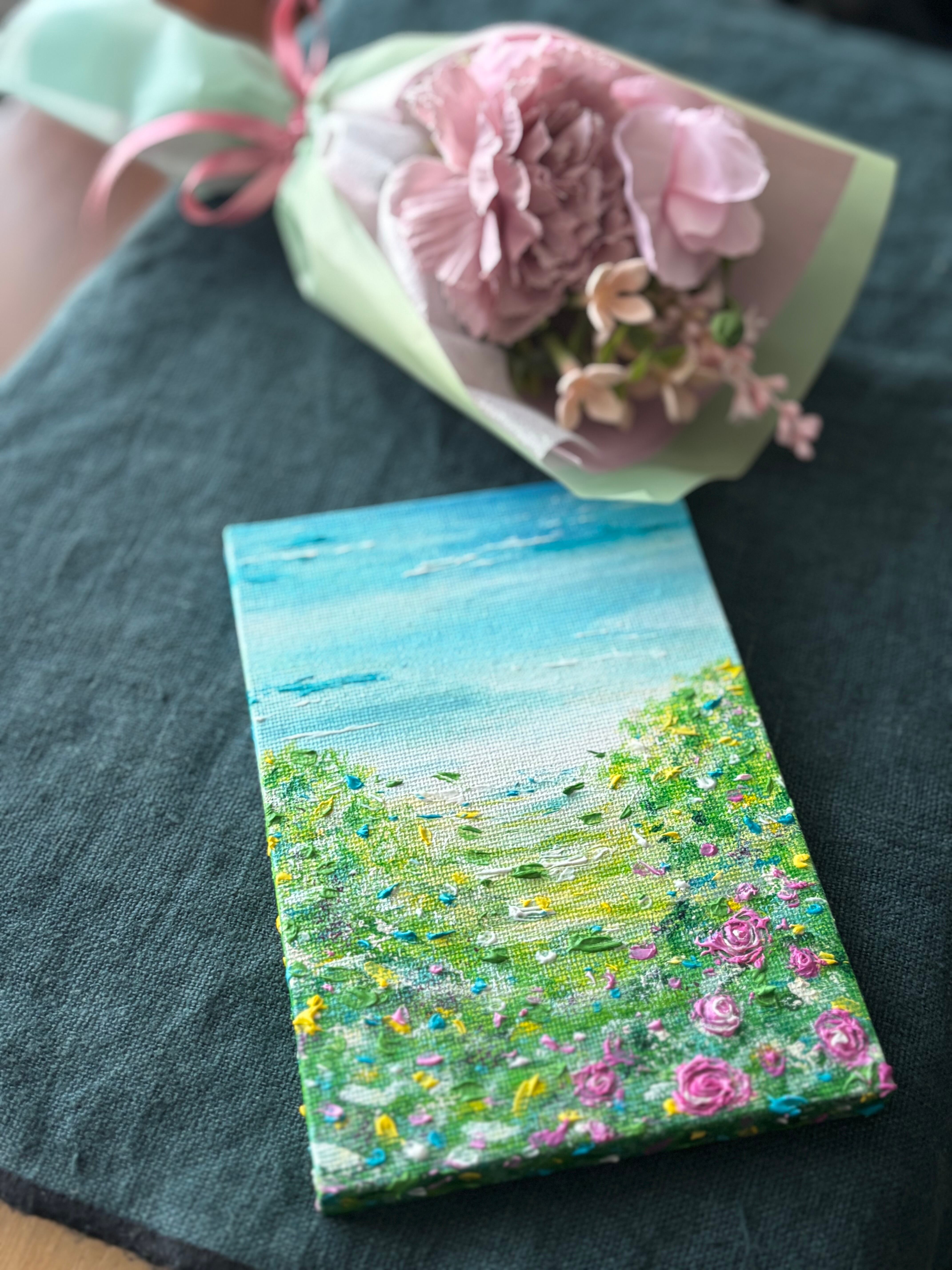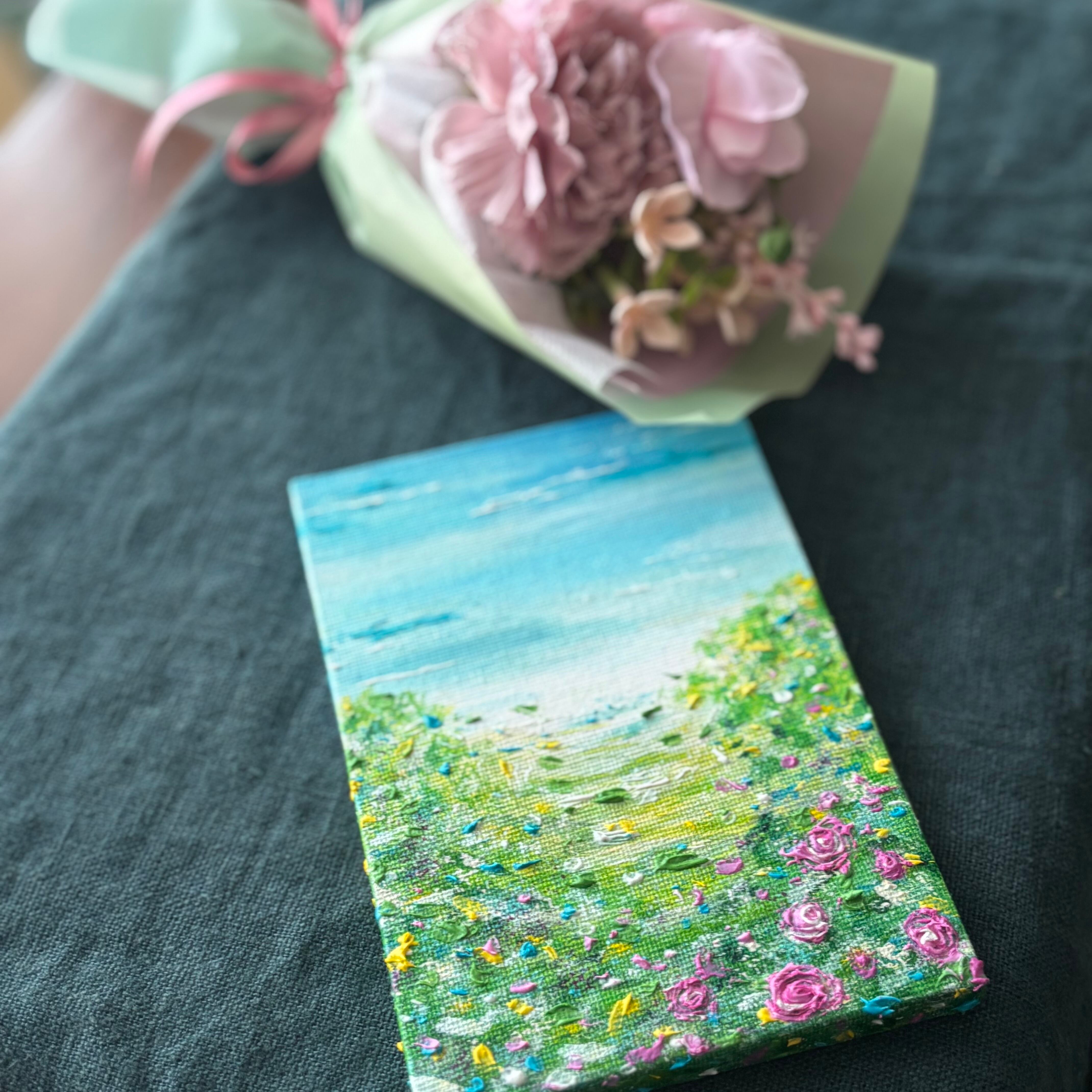 母の日の贈りものセット☆原画『花の降る丘』Sサイズ&『クラシカルピンクのアートフラワーブーケ』