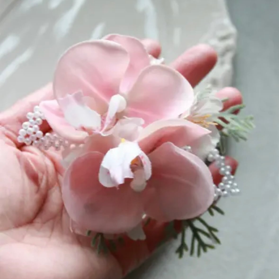胡蝶蘭と桜のコサージュ(ベージュピンク)